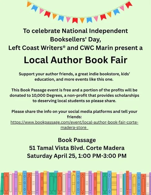 Does anyone else hear Fred Rogers' voice in their head? Oh for simpler times, or was that an illusion? Anyway, here's my invitation: Come out to Book Passage (Corte Madera) Saturday afternoon to peruse great books by local authors, and support two other fabulous causes: Independent Booksellers' Day and 10,000 Degrees scholarship fund. I'll be there, signing copies of The Badass Widows. It's going to be a beautiful day in the neighborhood. Come say hi!